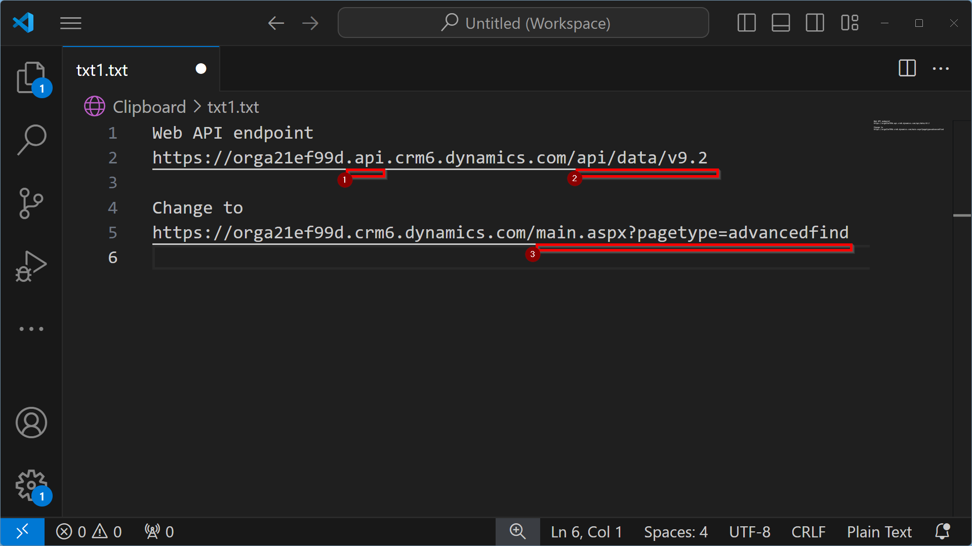 3.1 Web API endpoint: https://orga21ef99d.api.crm6.dynamics.com/api/data/v9.2
