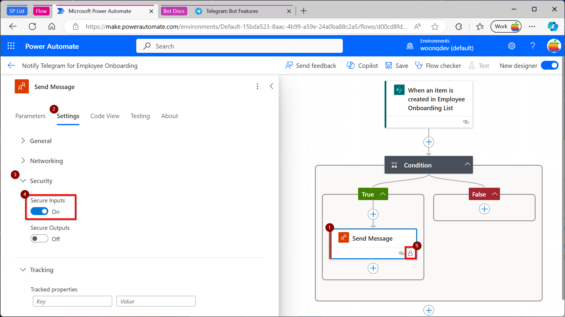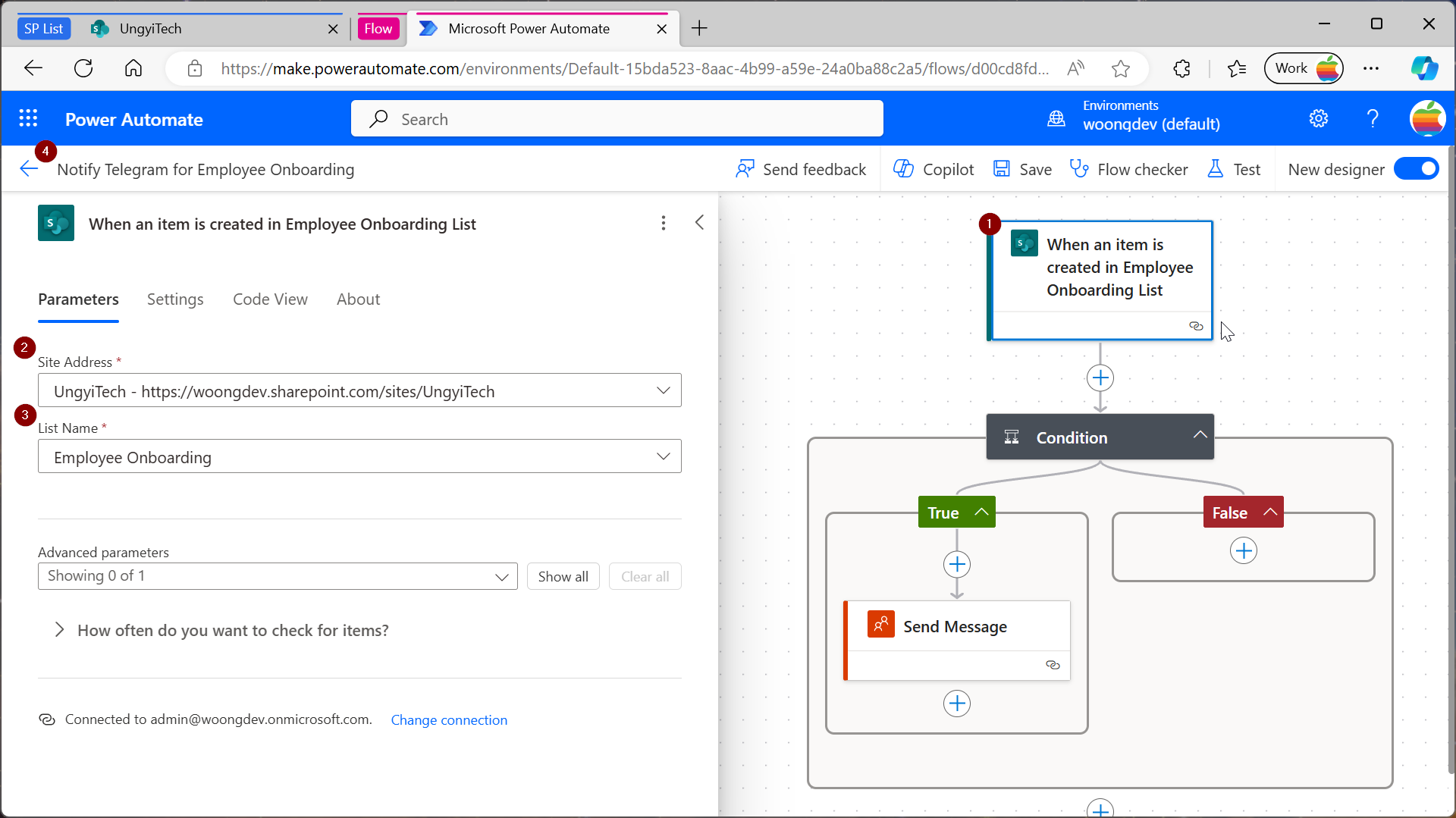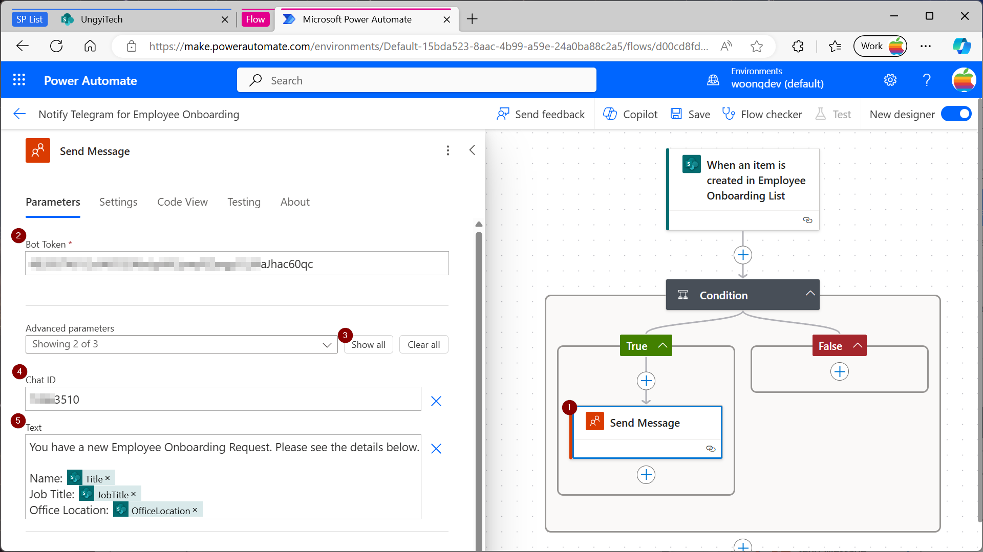 1.2 The bot sends a Telegram message with details from the SharePoint record.