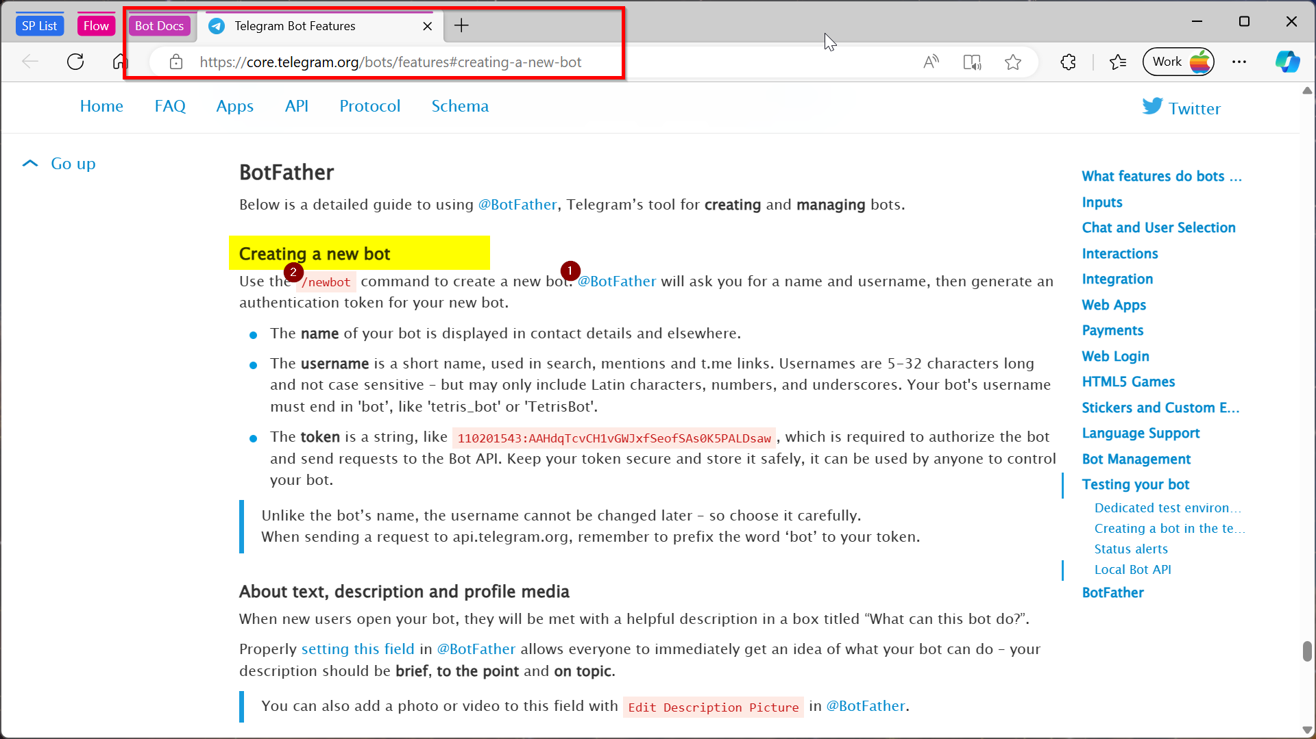 3.1 Telegram Bot Tutorial https://core.telegram.org/bots/features#creating-a-new-bot