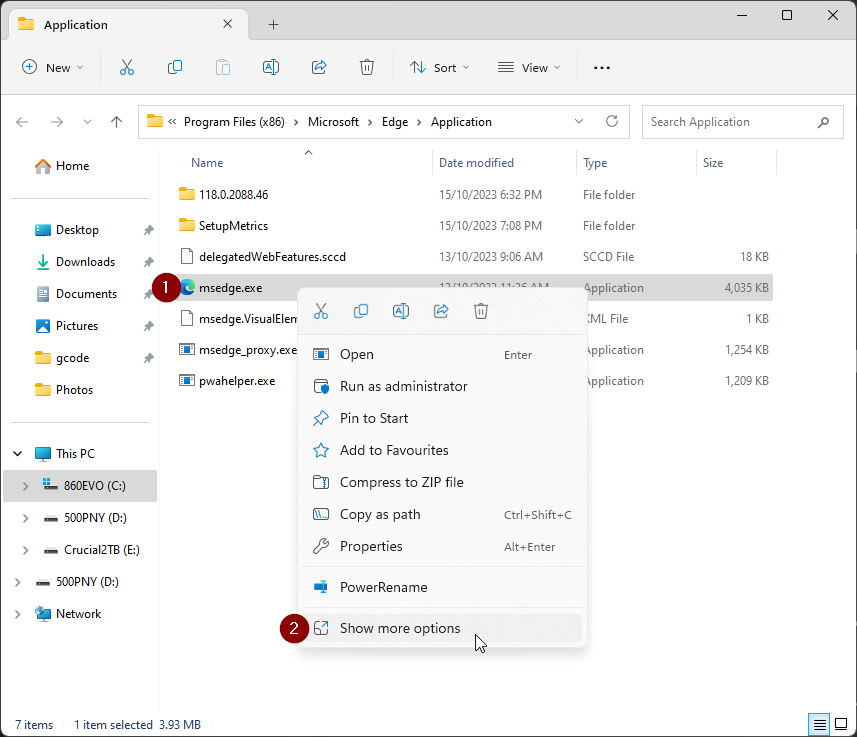 4. Right-click on “msedge.exe” - Select “Show more options”